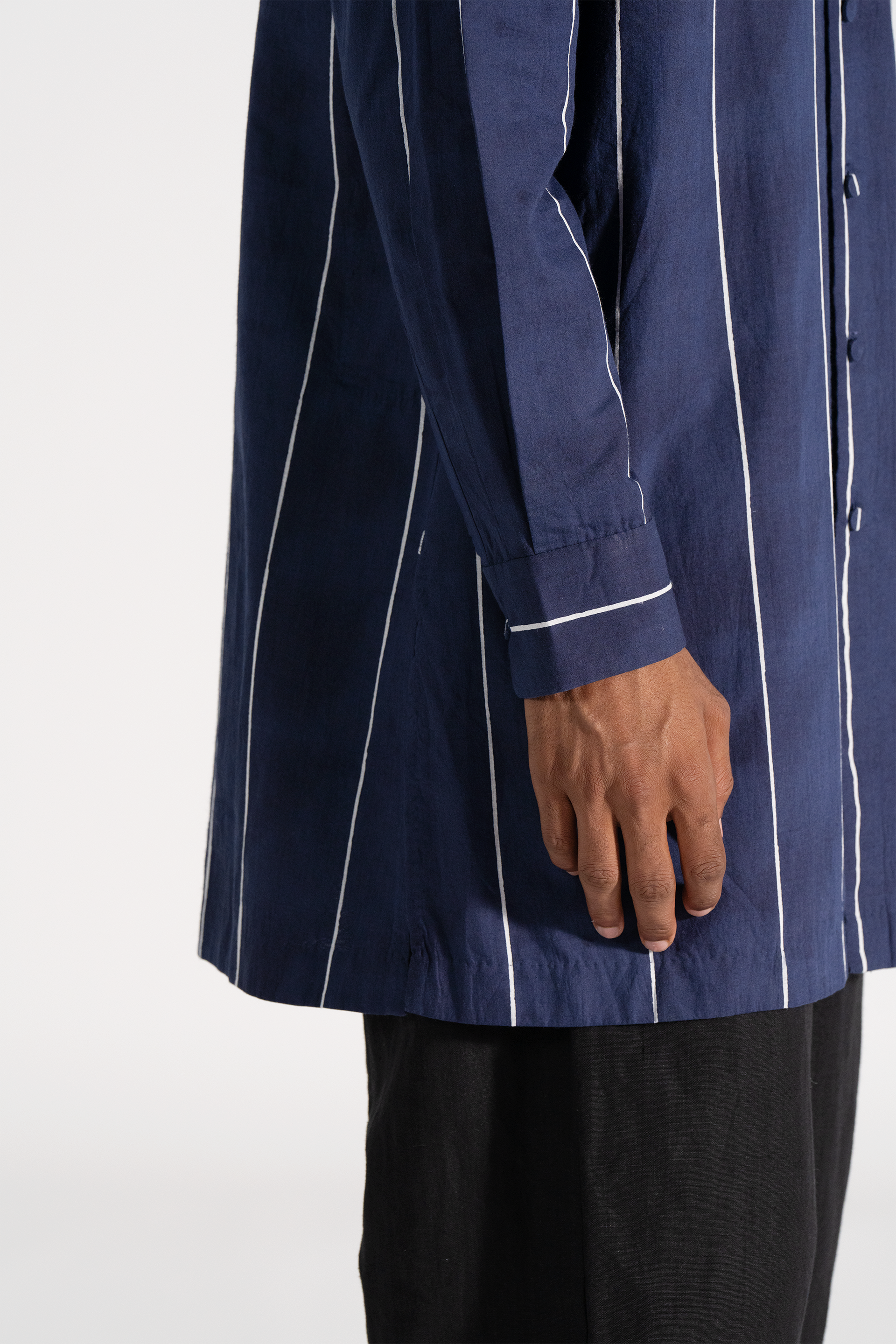Straight fit front open all over handblock printed kurta in handwoven khadi