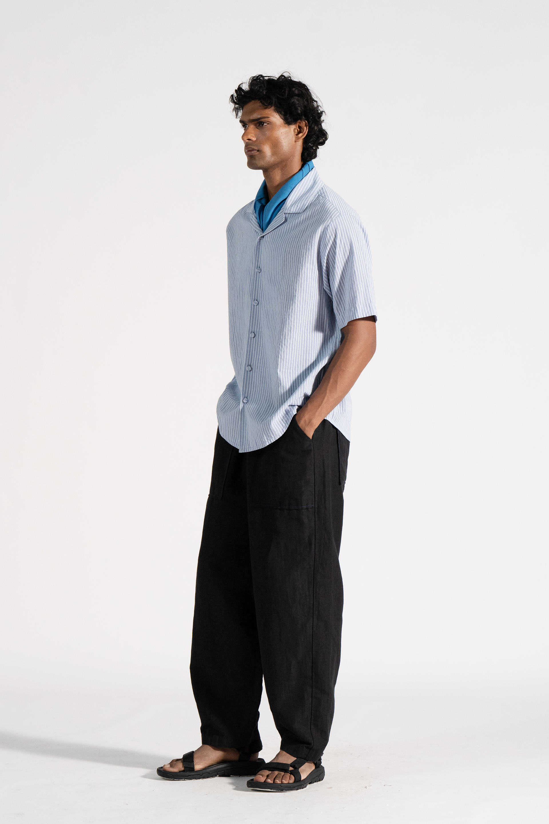 Notch collar shirt short sleeved handblock printed shirt in khadi.